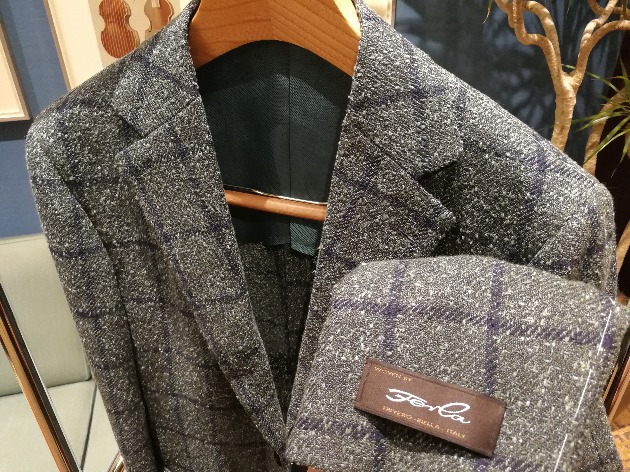 手前のトルソーが着ている、綺麗なグリーンのジャケット。