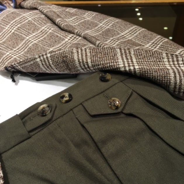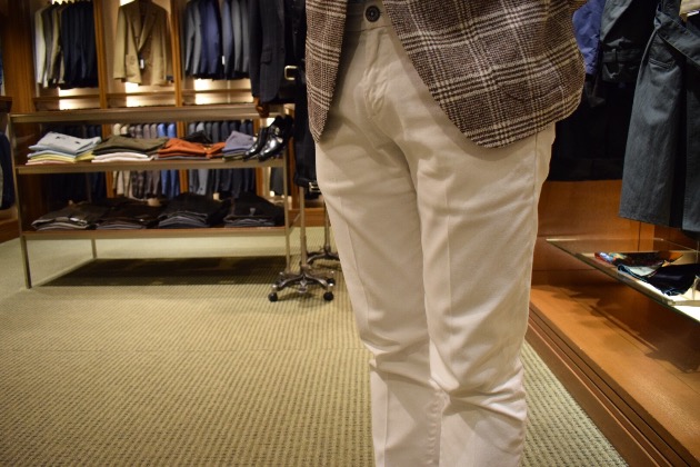 パンツはベルトレス。是非、タックインしてお召しください。