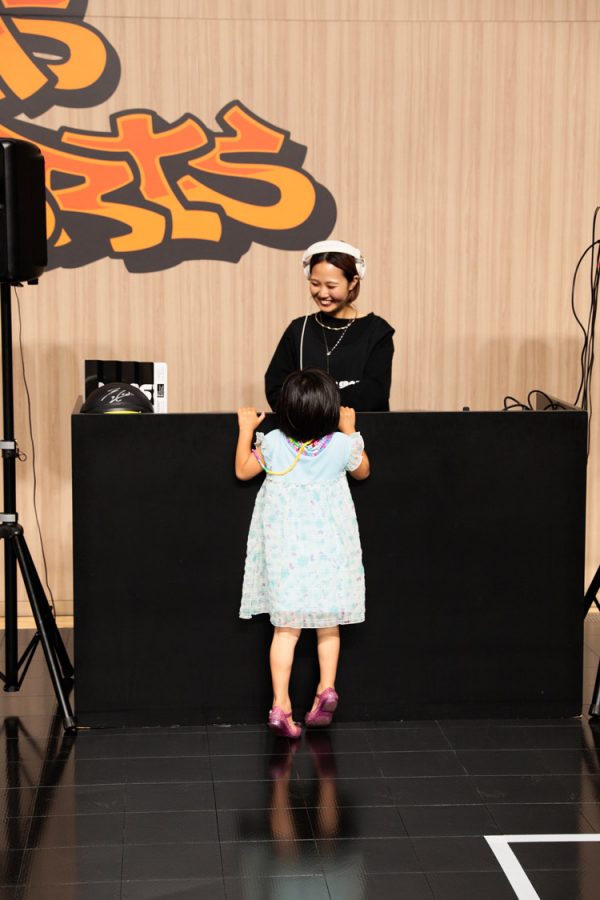 会場1Fエントランスでは、「HOOPVAN」を象徴するオリジナル車両を展示し、本イベントを盛り上げる応援ハリセンを配布。BUNTAI 2Fに位置する体育室では、フリースローチャレンジやスキルズチャレンジ(ドリブルタイムレース)、お子様向けのバスケットボール体験スペースを設けました。チャレンジゲーム参加者には、条件達成でバスケットボールやBEAMSギフトカードなどの景品も用意いたしました。