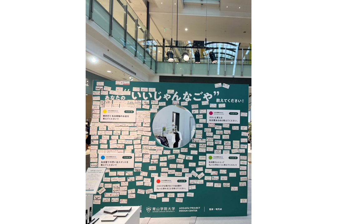 さらに、BEAMS JAPANと青山学院大学総合文化政策学部発のプロデューサー集団「AOGAKU PROJECT DESIGN CENTER」の産学連携の取り組みとして「大名古屋展2025」に並行して、名古屋の魅力をお客様にも発信いただき、改めて知ってもらう参加型展示「いいじゃんなごや」を明円卓監修のもと開催しました。