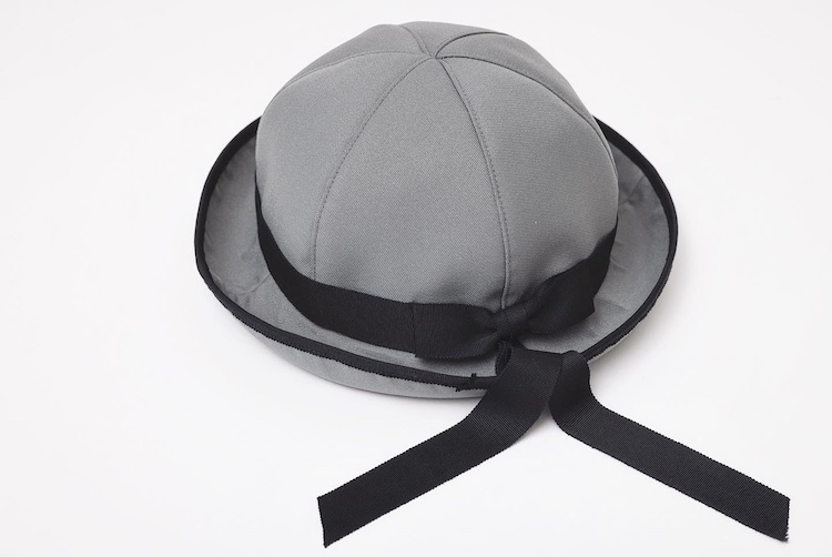 元々の園服デザインのセーラー服は踏襲しつつ、作りの良さを感じられるようハンドメイドで縫製し、全部総パイプに。バッグはブリーフィングのデザイナーの小雀新秀氏に、帽子製作は帽子デザイナーのHICOSAKAさんに依頼。