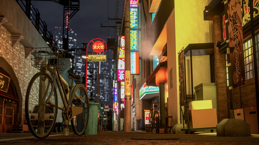東京の繁華街と路地裏をイメージした街の一角をリアルな描写で3D空間に起こし、ソーシャルVRの醍醐味とも言えるバーチャル空間での交流を促す、心地良い実在感を演出するワールドとなります。