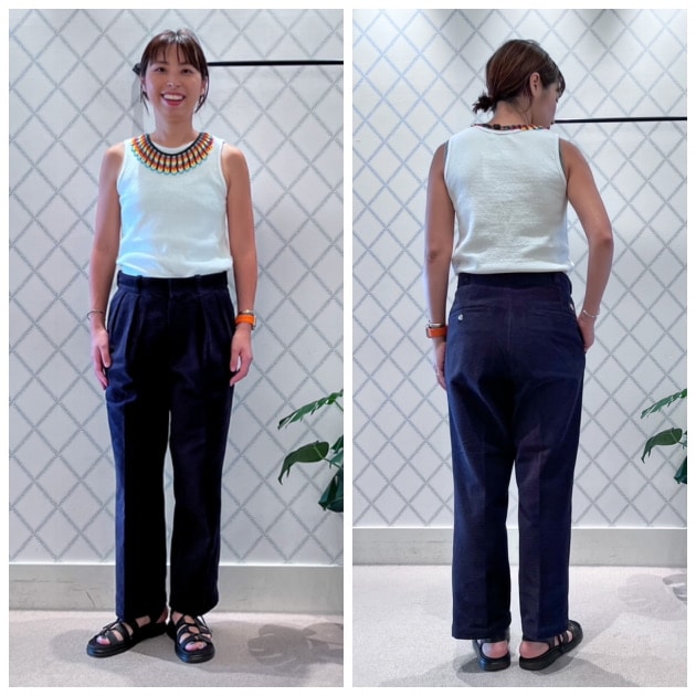 銀座店スタッフの坪田と、同じサイズのパンツを穿いてみました。