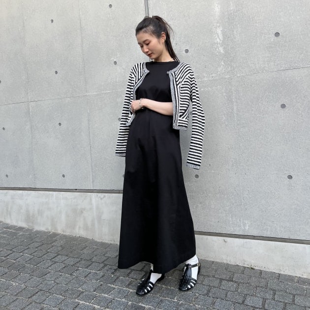 この日はカーディガンを羽織ってコーディネート。