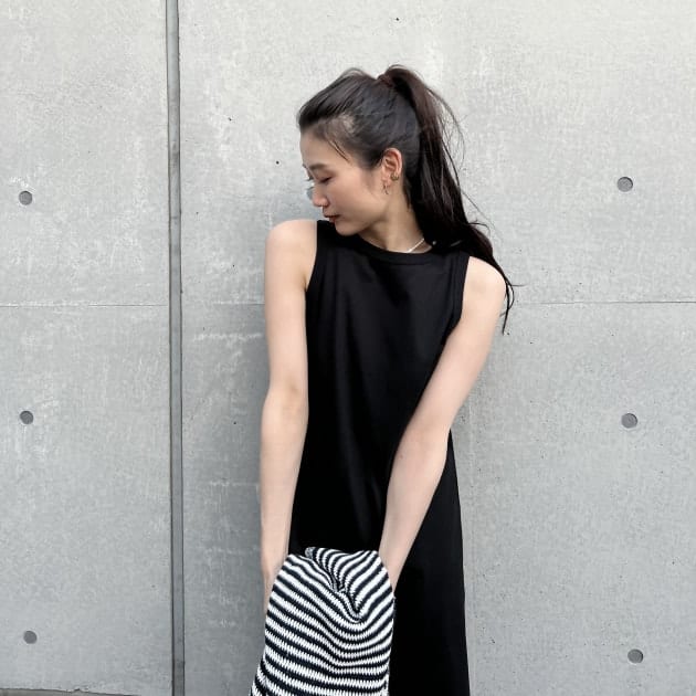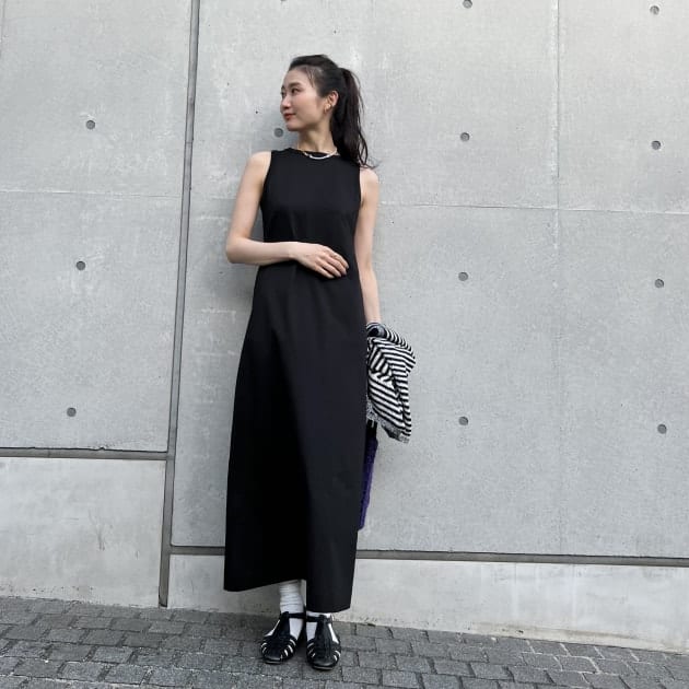便利なTシャツ素材のノースリーブワンピース。