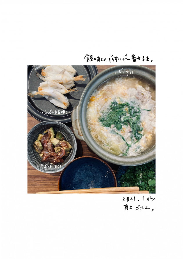 お鍋をした翌朝は、必ずお雑炊にして食べます。