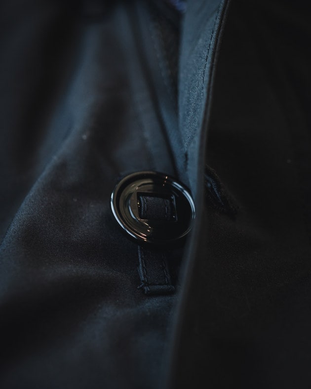 軽量でありながら機能性を備えたファブリックはマットな質感がクールな印象。パラシュートボタンのさりげないアクセントも見逃せません。
