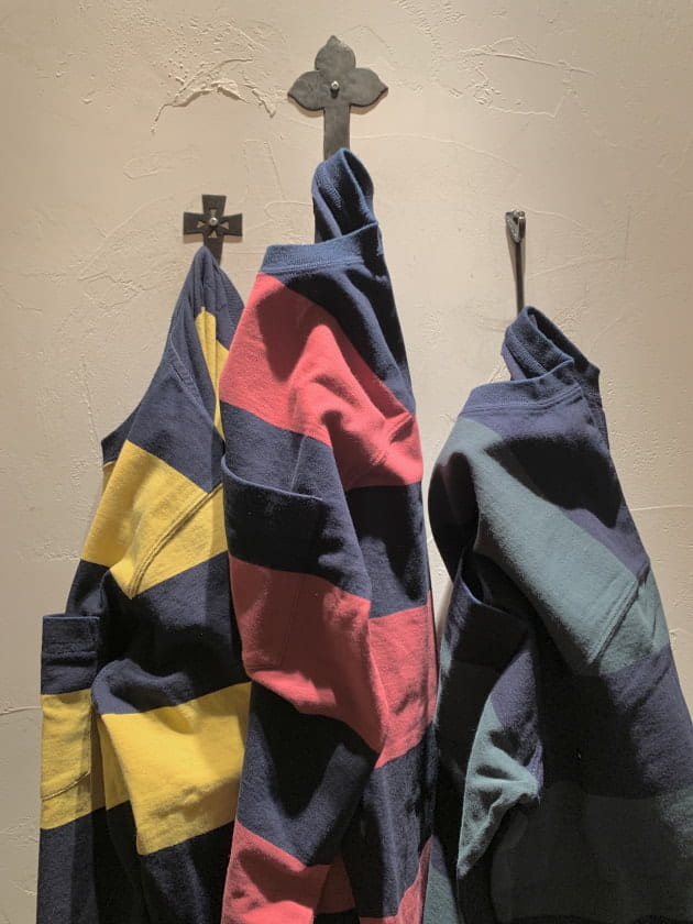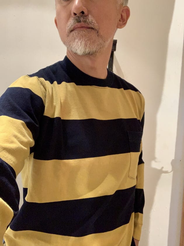 BEAMS PLUS / 4インチ インディゴボーダー ポケットTシャツ