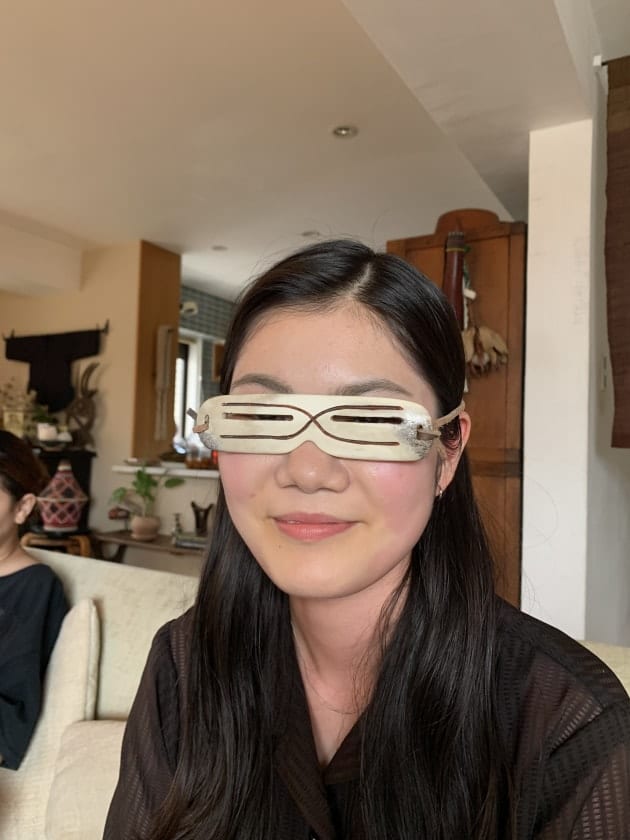 遮光器は伝統的に流木、骨、セイウチの牙、カ カリブーの角などで出来ている。着用者の顔に合うように彫られ、前面には細いスリットが水平に1本ほど刻まれている。
