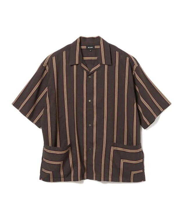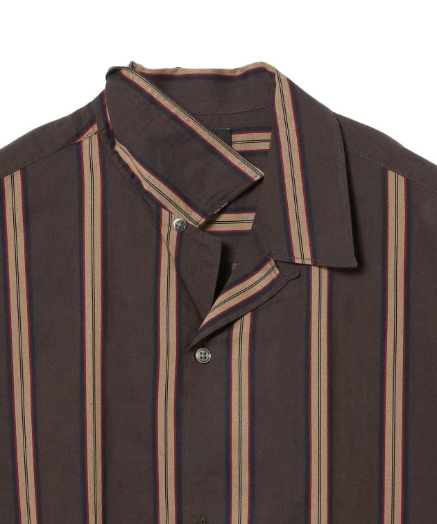 BEAMS ストライプ オープンカラー シャツ