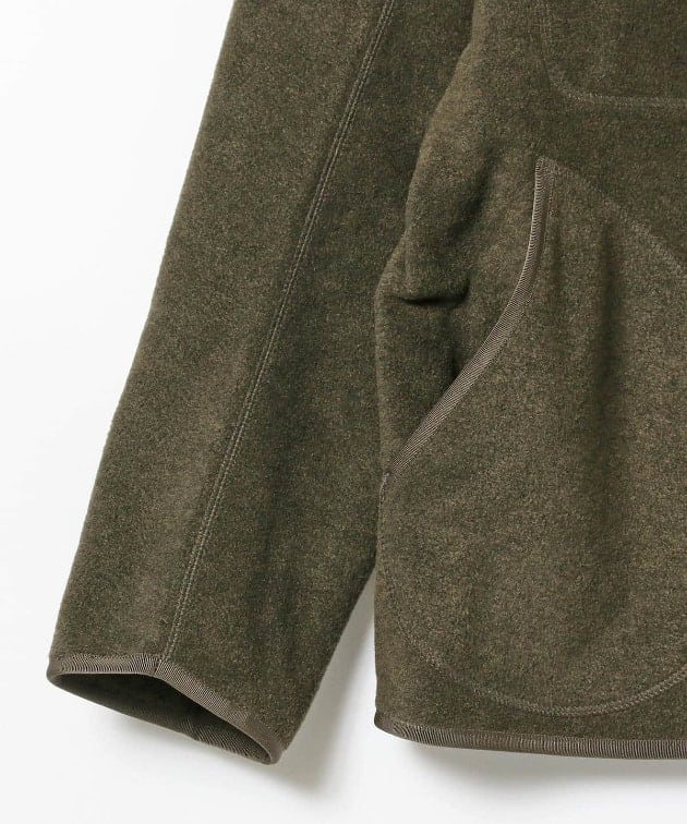 <BEAMS(ビームス)>でも秋冬は、長らくクラシカルなワークウェアをベースにウール素材のジャケット、ベストにフォーカスして別注アイテムをリリースして好評を得てきましたが、シンプルなデザインはこのフリースカーディガンにもいかされています。