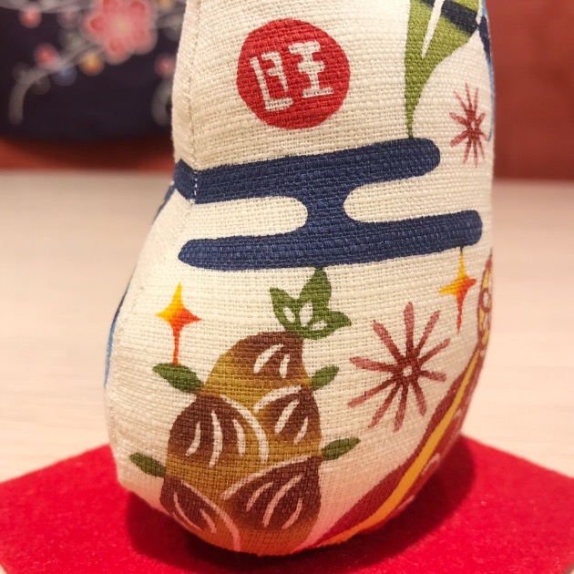 沖縄独自の伝統工芸・紅型(びんがた)で染められた笑い戌。
