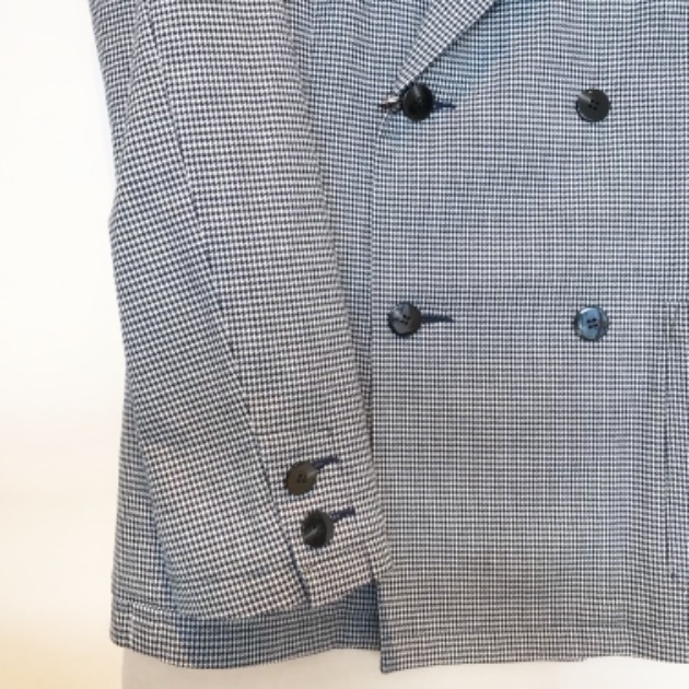インディゴ染めされたダブルジャケットとパンツ。