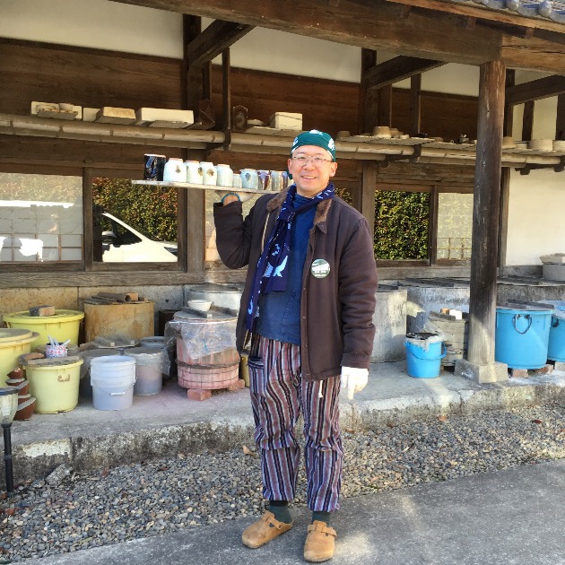 -写真は仕上がった陶器を運ぶ濱田友緒さん-