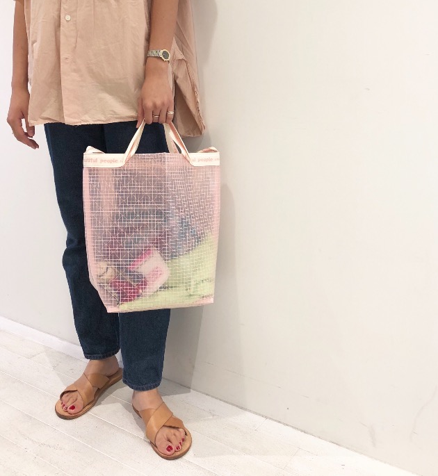 透け感のある素材なのでカラフルなポーチやアイテムを入れて持つとより可愛く使って頂けます☆