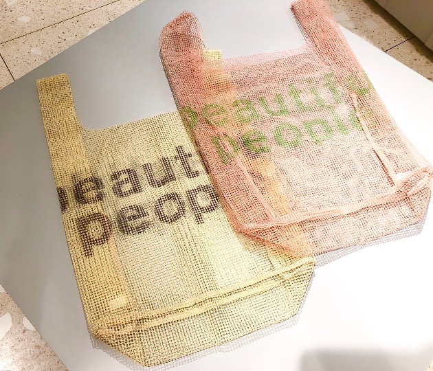 素材の特性を活かしたシンプルなショッピングバッグ型の作りに対して大胆にロゴが施され表現されています!