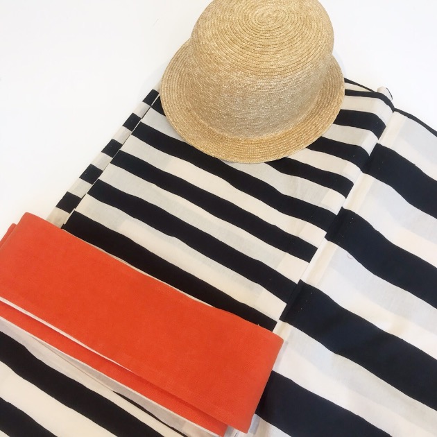 幅が違うボーダーの浴衣に、オレンジ色の帯を合わせたり…