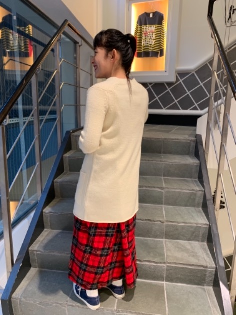 158cmの私、ヒラヤマが羽織るとこのくらいの長さになります!