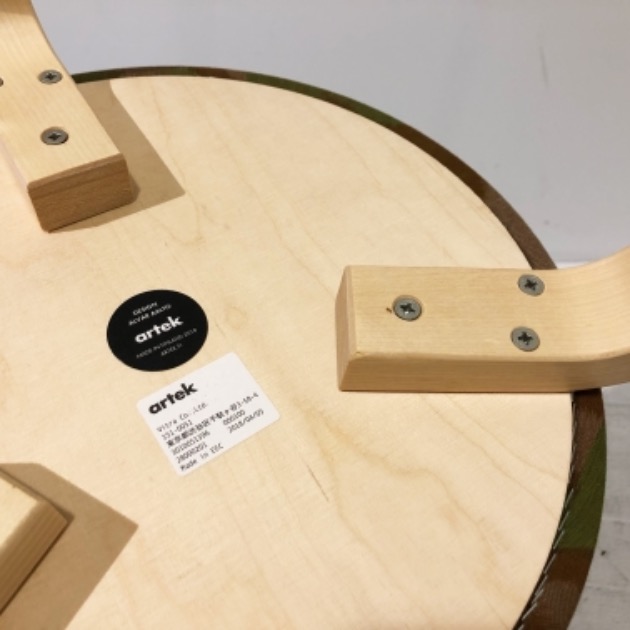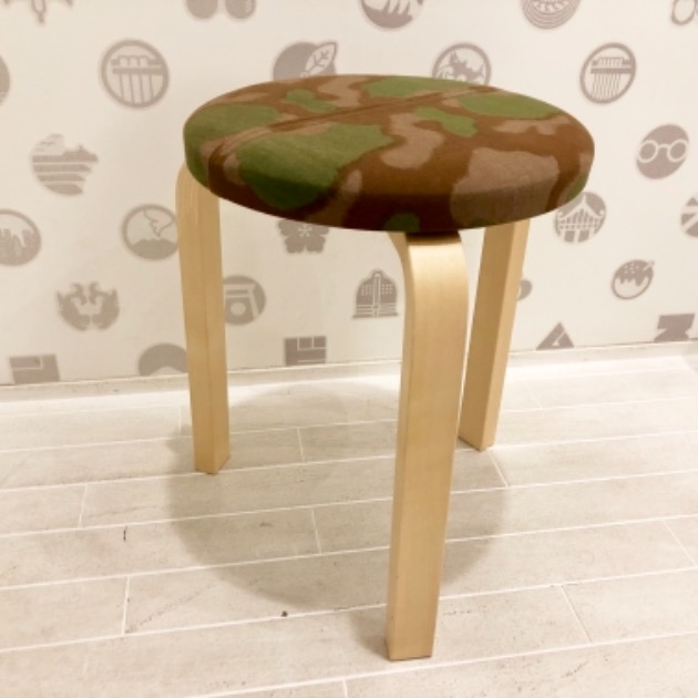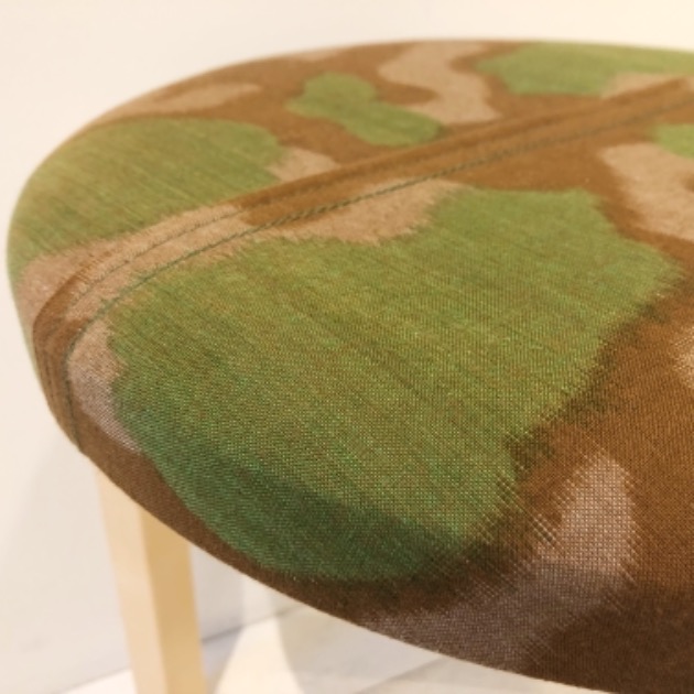フィンランドの家具メーカー<ARTEK>のスツール60に、福岡県の伝統織物である久留米絣の生地を張ったスペシャルアイテム。
