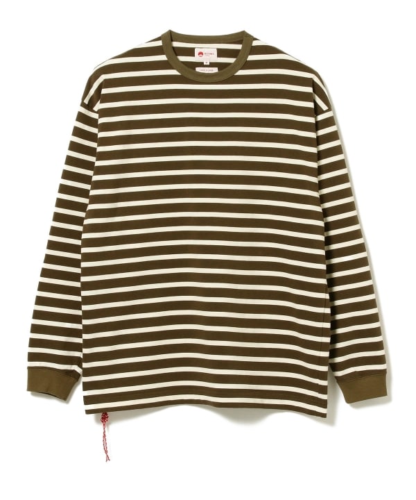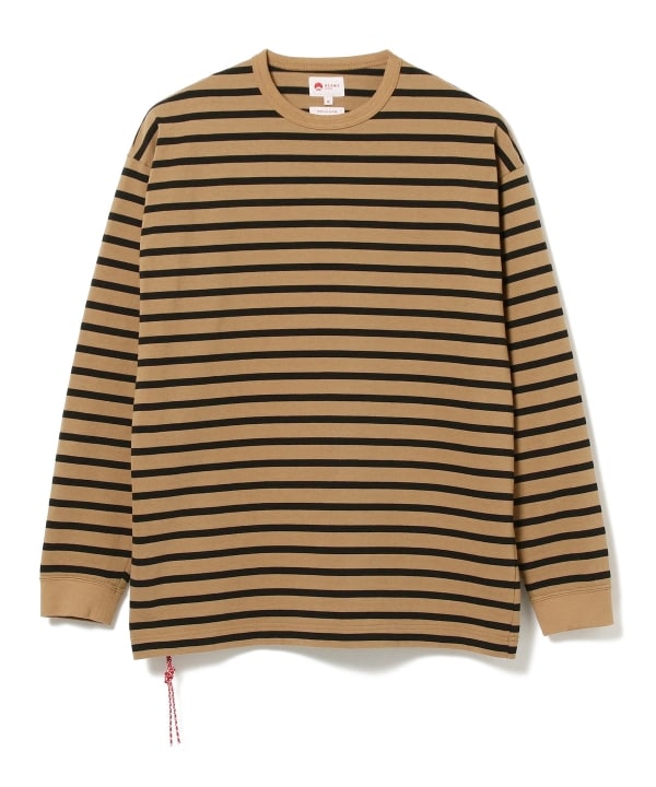 生地は超度詰めのボーダー天竺を使用しています。そのため着ていただくと独特の固さやハリを感じていただけると思います。