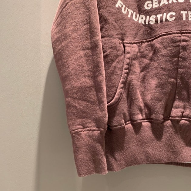 この製品洗いが入ったプリントのヘビーオンスフーディーも素晴らしい。
