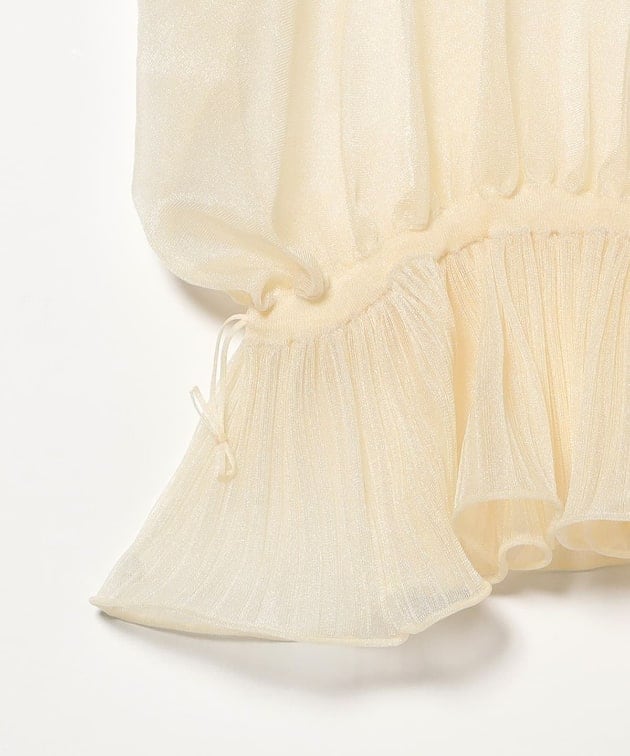 ボディも編みたてており、編地のセンスと、透明感のある特殊な糸を組み合わせることで、この軽やかでシアーな質感を表現しています。