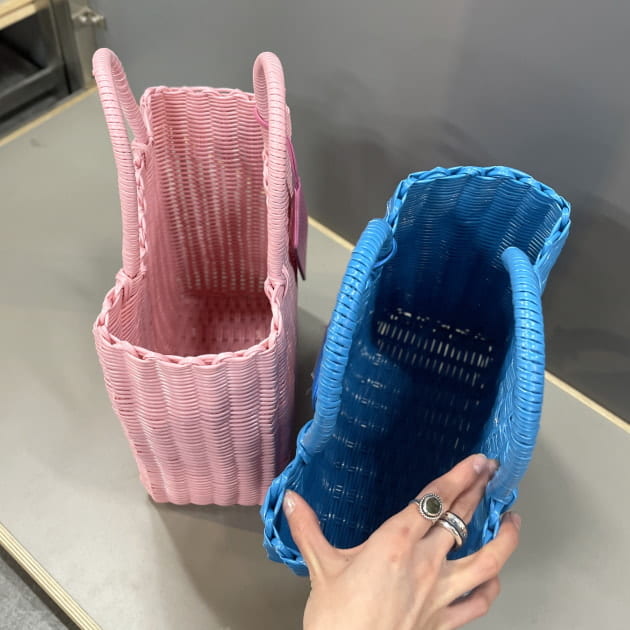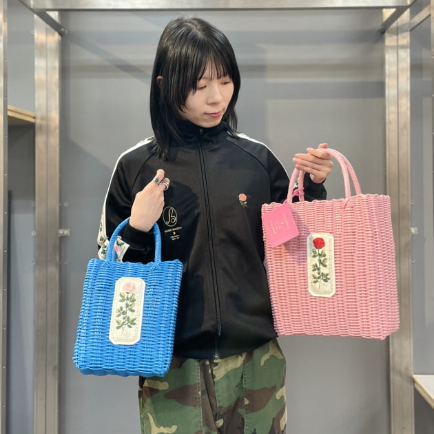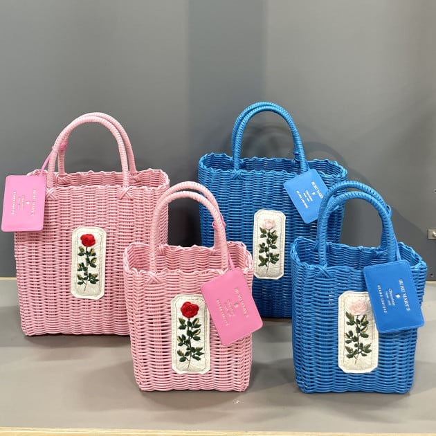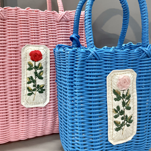 アイコニックな薔薇を、立体感のある手刺繍で表現したカゴバッグ。