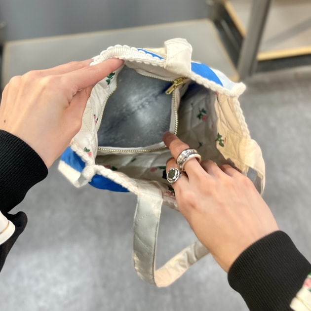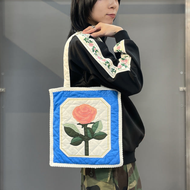 キルティング地に薔薇がデザインされたトートバッグ♡