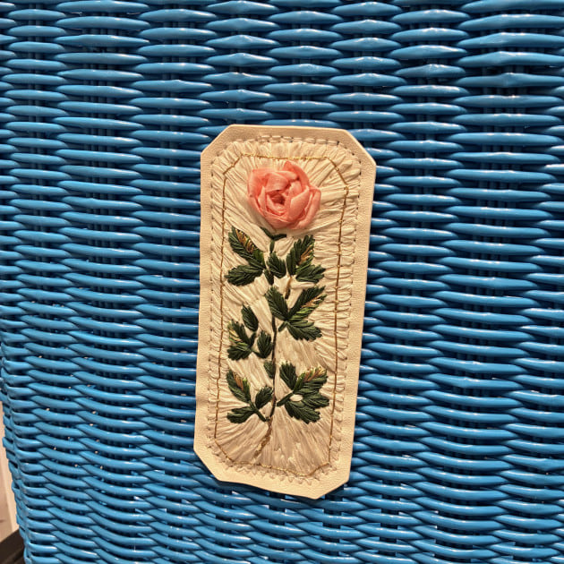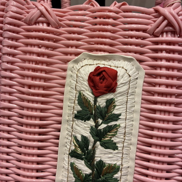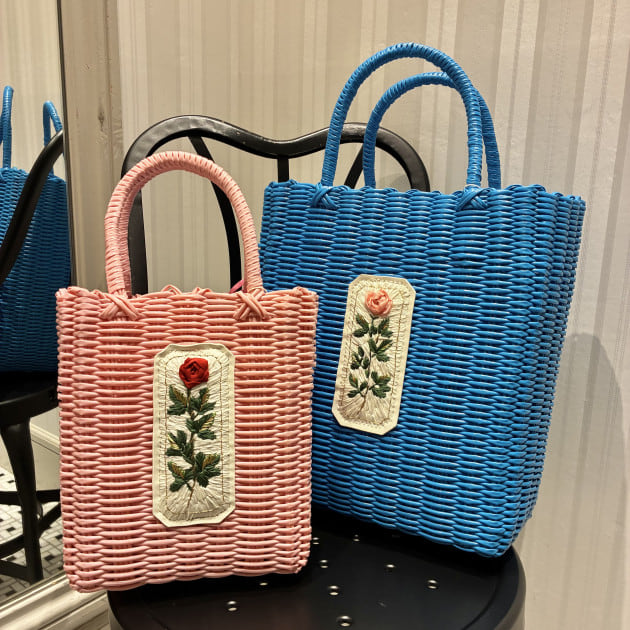 RURU MARY'Sの世界観を表現した、手刺繍のバラが華やかなかごバッグ。
