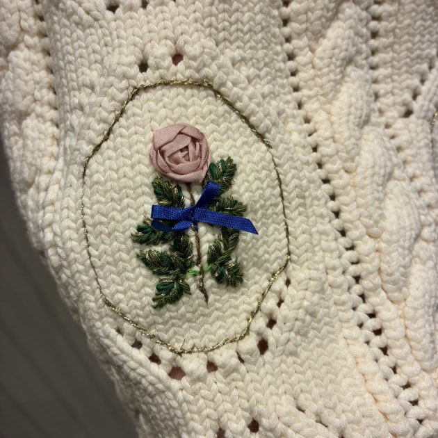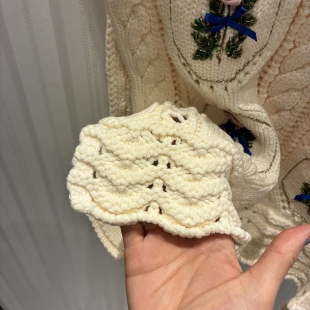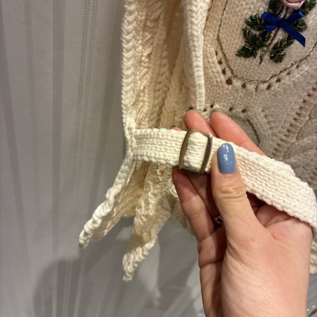 こちらは手刺繍のバラが贅沢に全面に施されたニットベスト。