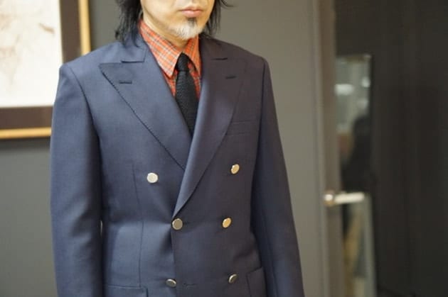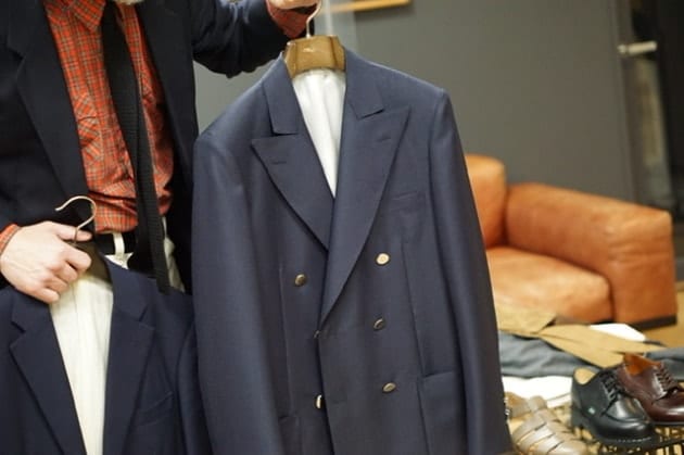 ブランドの代名詞であるシルバーボタンに、生地はDORMEUILのモヘア混。最高級です。