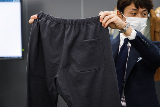 「継続のモデル、リバースウィーブのスウェット。極限まで度を詰めて編まれた生地を使用しながら、裏のパイル地を短くすることで厚みを抑えており、バルキーでいながら上品なルックスで着こなせます。シルケット加工を施した滑らかなタッチと艶感もポイント。23年春夏シーズンではこの杢調のダークグレーが新鮮です。もちろんベーシックなグレーもご用意しています。」