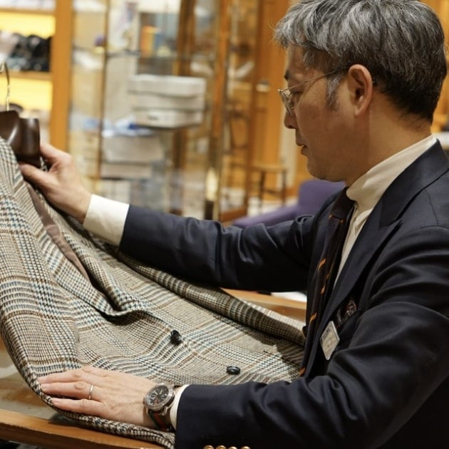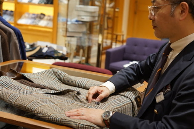 余談ですが、以前工場に見学に行った際に柄物ジャケットの製作を拝見しました。