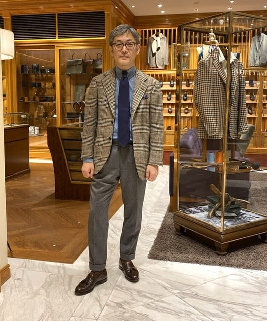 綺麗なペーンが走る英国老舗のツイードジャケットです。