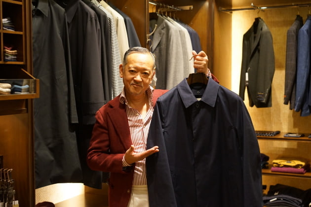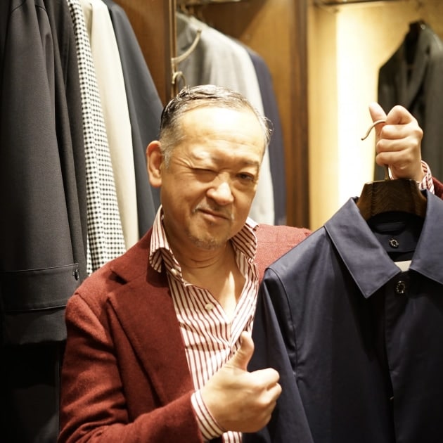 師匠のオススメは<MACKINTOSH(マッキントッシュ)>のレインテックステンカラーコートです。