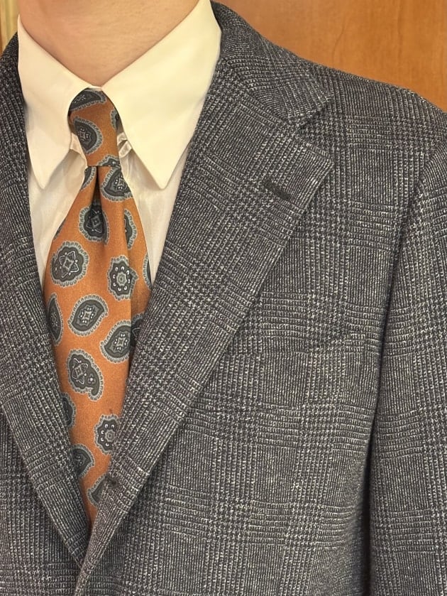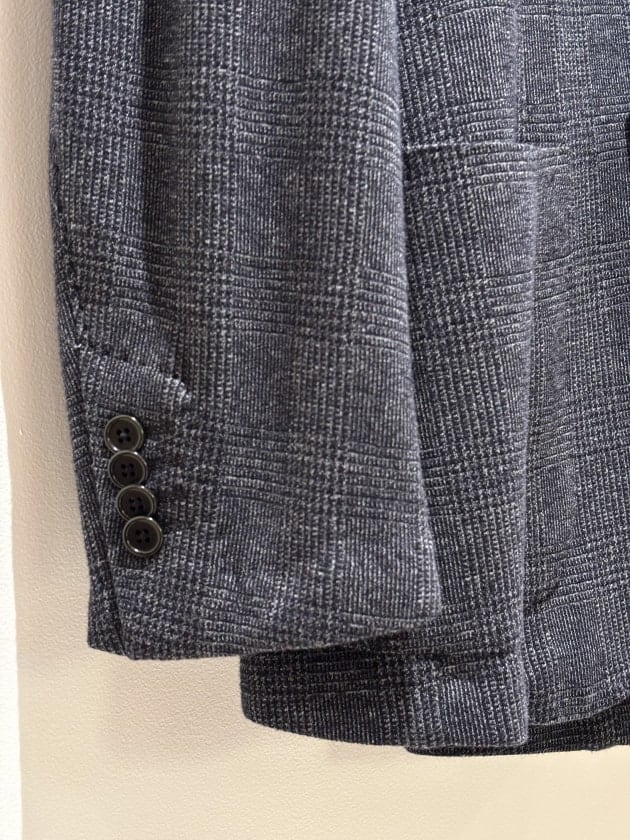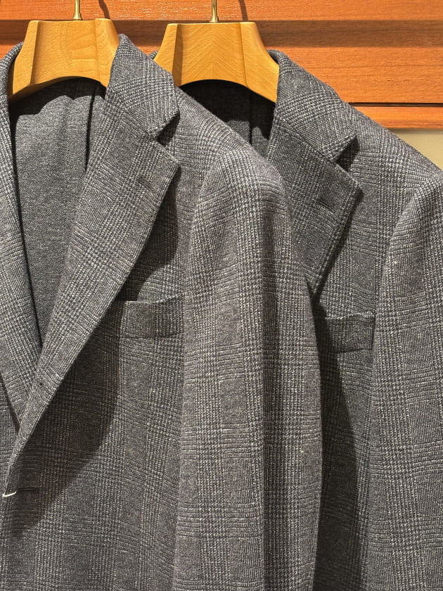 GREYカラーのジャケットをお探しのお客様にもオススメです。柄の主張が少ないシャドウグレンプレイドですので、ビジネスシーンでも着用し易い柄だと思います。