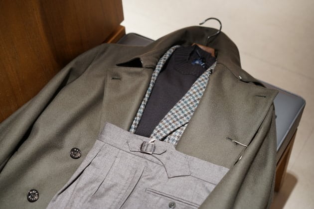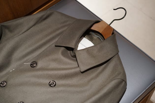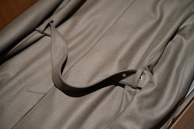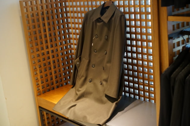 英国の伝統的なトレンチコートベースに、エポレットやガンパッチなどのミリタリー要素を、あえてそぎ落とし