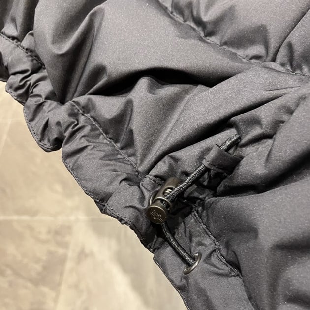 右袖には<MONCLER>のアイコンロゴマークがついています。フードの左右には<MONCLER>のシグネチャーが付いています。フードをかぶらない時にもさりげない主張があり<MONCLER>の高級感を感じさせてくれます。