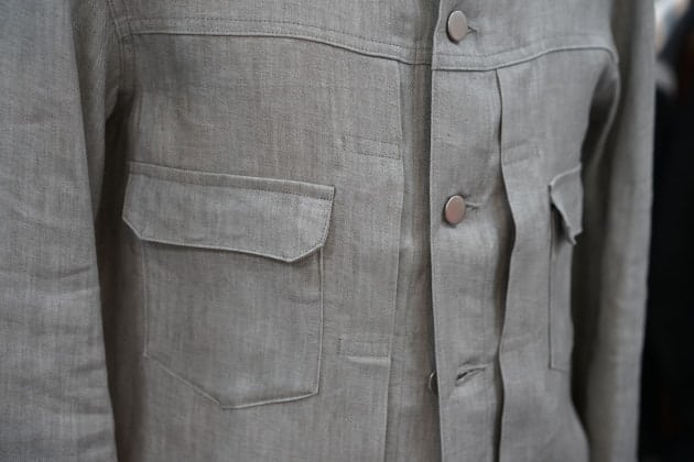 今回の別注では、ボタンをフラットなシルバーボタンへと変更。