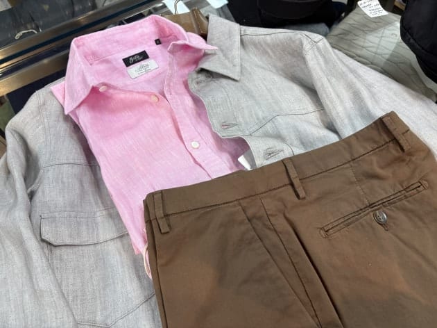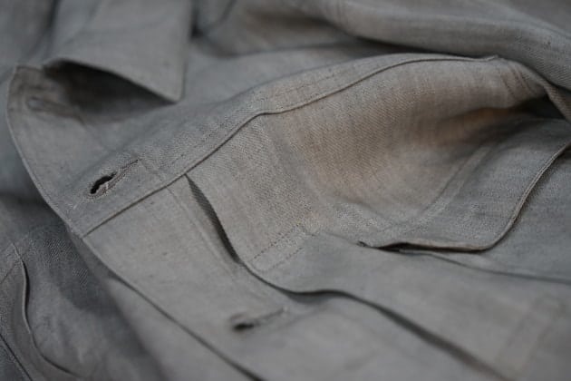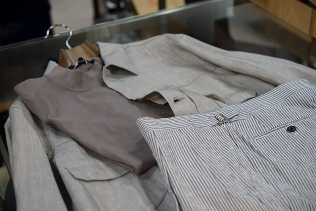 リネン素材の落ち間が、着用時に柔らかな印象を与えてくれます