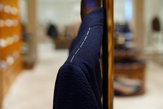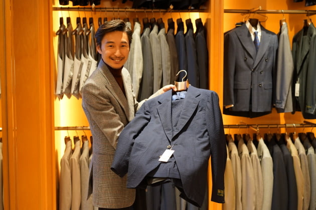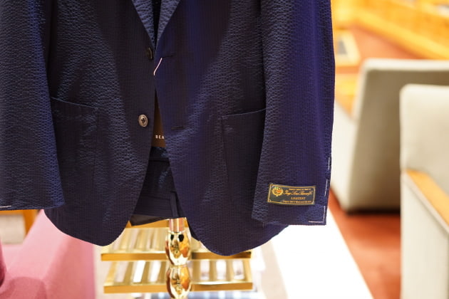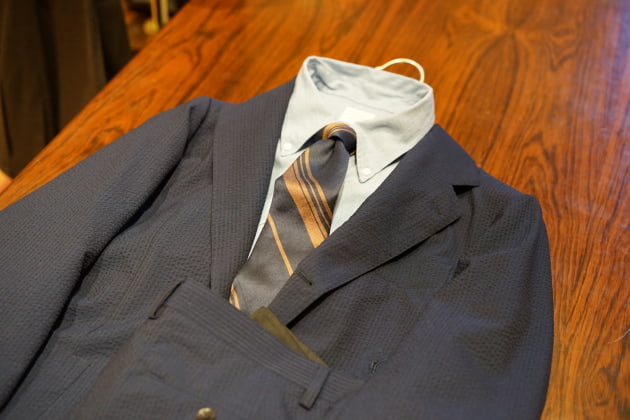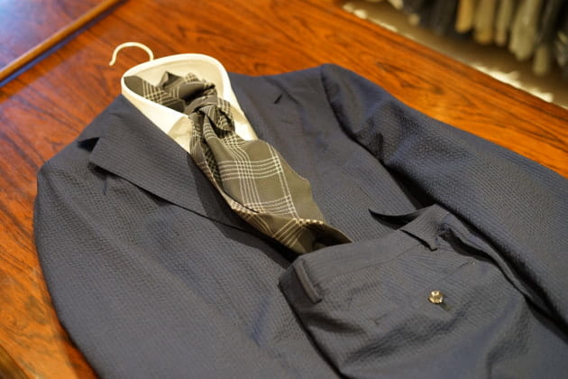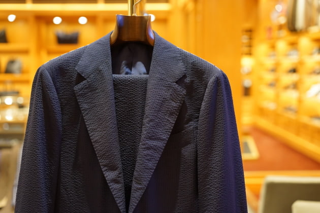 スーパー150sのウールシルクを贅沢にブランドした<Brilla per il gusto>のシアサッカースーツです。