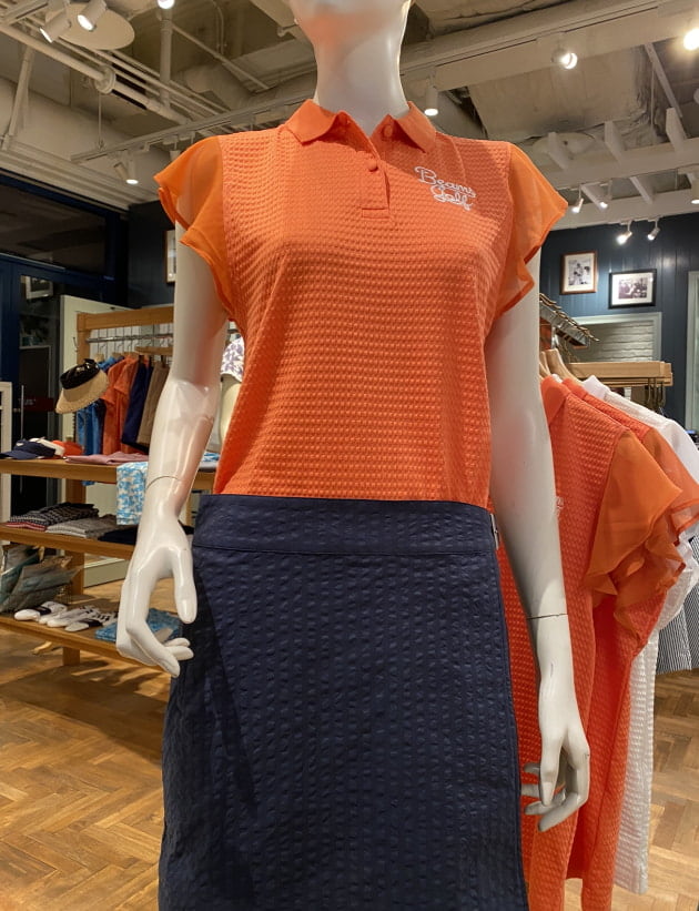 オレンジレーベルのシフォンスリーブポロシャツ!