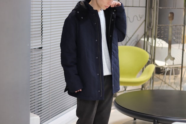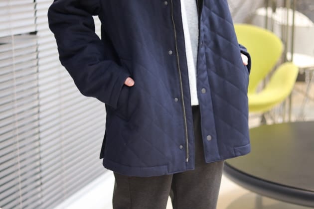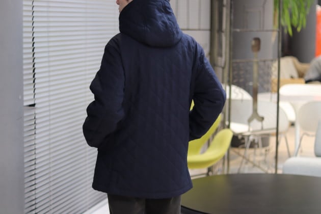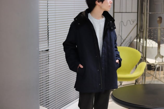 トラディショナルな雰囲気を持ちながら、2WAY仕様で高い汎用性を誇る「フーディースタンド キルト コート」です。