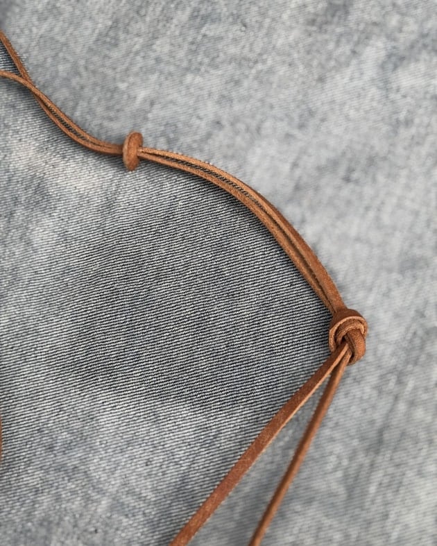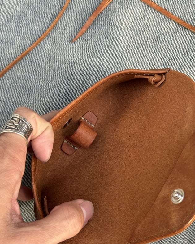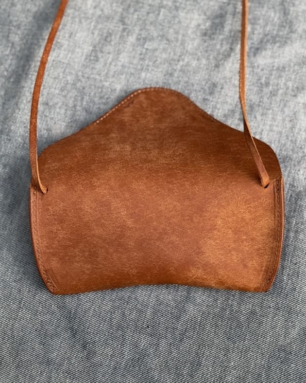 そのアイデアをもとに、あくまでMOTOで表現するのであれば裏地をつけなくても良かったり、メガネの当たる部分には金属を使用しないようにし、留め具以外は全てレザーのみで仕上げました。