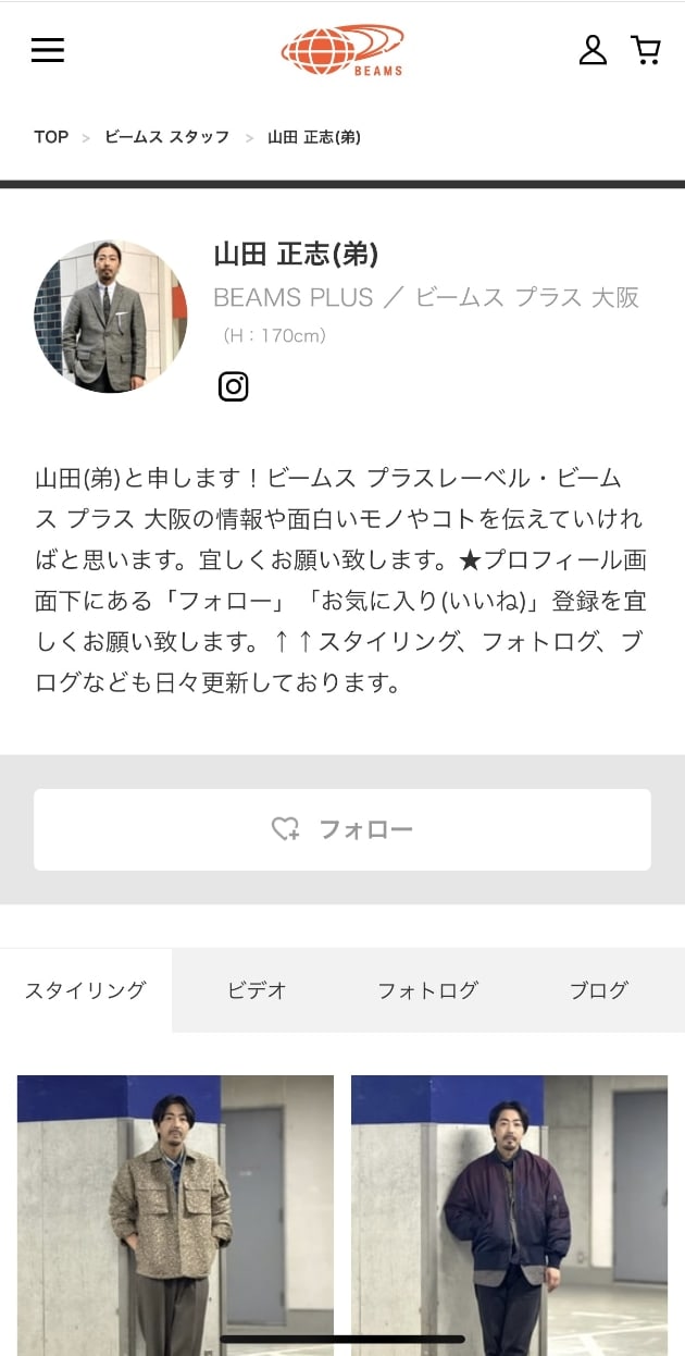 いつ、どこでも絵になる兄貴的存在であり、BEAMS PLUS OSAKAのイケメン枠に入るSTAFFでもある。祭りを愛する熱い一面もあるナイスガイ!