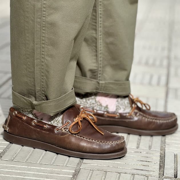 オリーブにはブラウンカラーのモカシンもハマりが良いですよね。