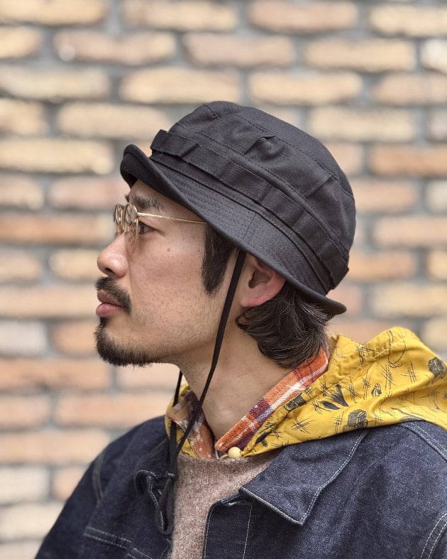 ミリタリーのハットをベースに、BEAMS PLUSオリジナルファブリックで載せ替えております。