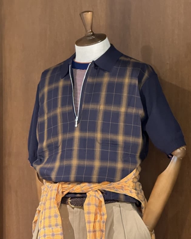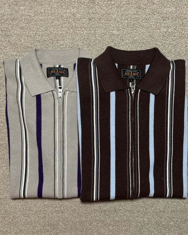 最近個人的にハマっている洋服のひとつである「Zip Knit POLO」 昨シーズンか2年前のシーズンに出ていたストライプ柄の半袖ニットポロ、あまりしない2色買いをしております。