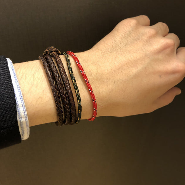 そして、レザーブレスレットとの重ね付けもおすすめです!