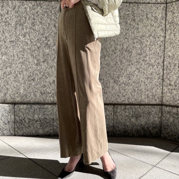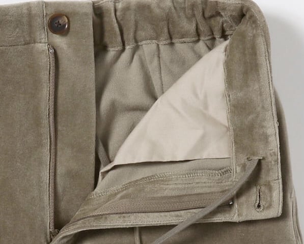 素材作りからこだわるAURALEE、オーガニックコットンの美しい毛並みのベロア生地を使用しています。内側のドローコードでウエストのフィット感は調節できます